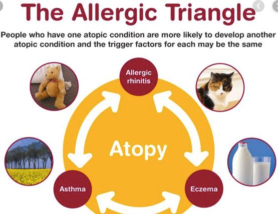 Those with atopic tendencies may also develop one or more of the other atopic conditions such as asthma or hayfever (allergic rhinitis). There is also a link between anaphylaxis and Ecezma. There is also believed to be a strong genetic component with development of this condition, however even if no parent has the condition children/individuals can still have Ecezma/ Atopic Dermatitis. It is 75% more likely though that if both parents have the condition that the child will develop it.